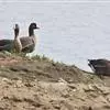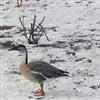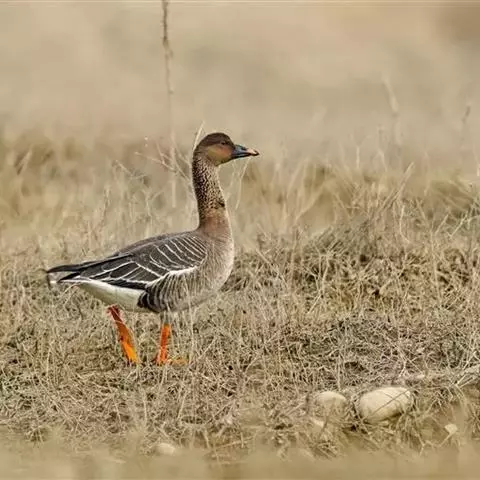 豆雁,雁形目鸭科。成鸟头、颈、背灰褐色,带淡黄色羽缘;尾上覆羽白色,尾羽黑褐色带白端,…