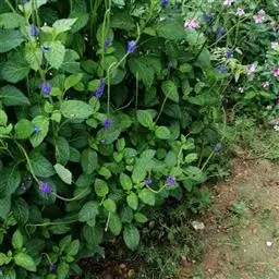 蔓马缨丹是一种灌木;枝下垂,被柔毛,长0.7~1米。叶卵形,长约2.5厘米,基部突然变狭,…