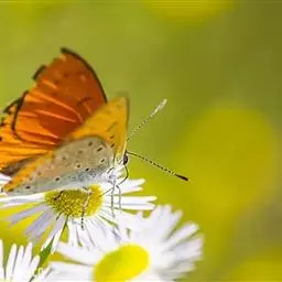 橙灰蝶Lycaena dispar Hauorth,鳞翅目、灰蝶科。这类蝴蝶雌雄异型,雄蝶前翅翅面…