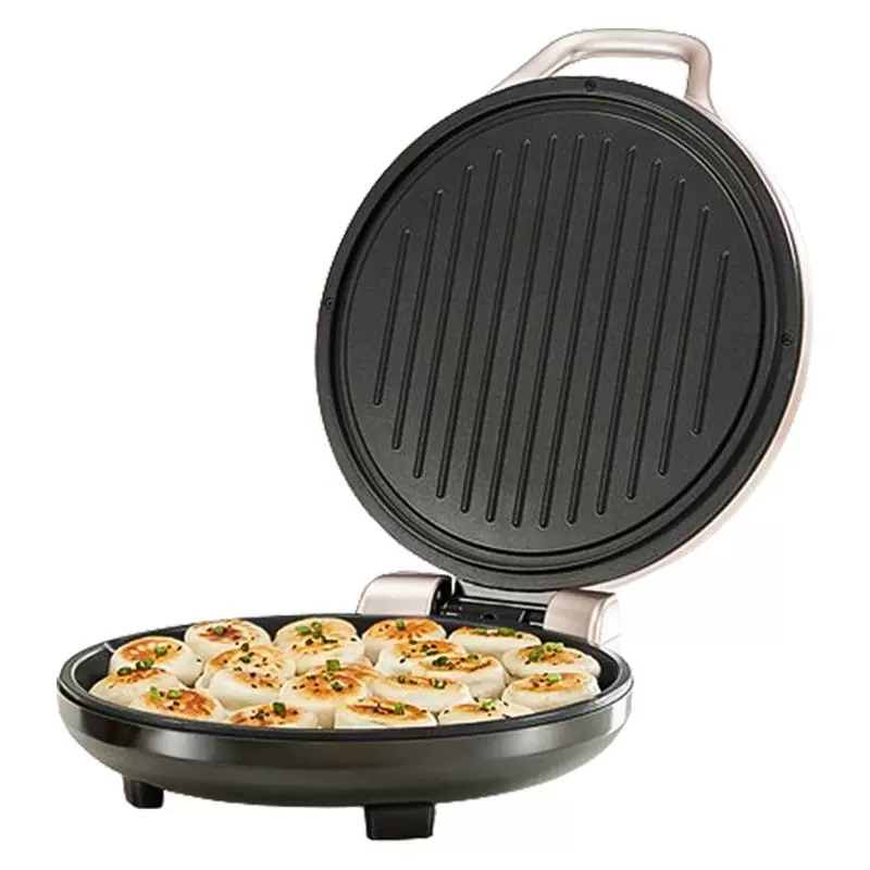 电饼铛也叫烤饼机,可以灵活进行烤、烙、煎等烹饪方法,有家用小款型和店面使用大款两种。