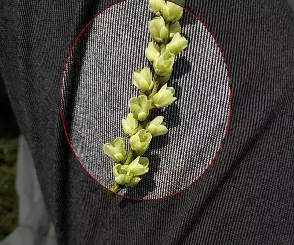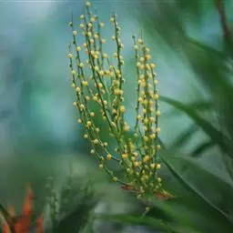 穗状花序腋生,先叶开放,长5-10厘米,无梗;花黄色,长约7毫米,近无梗或有短梗;苞片1枚,三角状卵形,顶端急尖,长约3毫米;小苞片2枚,卵形,长约2厘米;萼片4枚,黄绿色,卵形,长约3:5毫米,顶端钝;花瓣4枚,卵形,长约6.5毫米,顶端圆形;雄蕊8枚,与花瓣等长,花药长圆形,纵裂,2室;子房瓶状,连花柱长约6毫米,被微柔毛,柱头头状,不裂。果实圆球形,直径6-7厘米,无毛,近无梗,基部具花被的残留物。花粉粒球形或近球形,赤道面观为近圆形或圆形,极面观为三裂圆形或近圆形,具三孔沟。染色体数目2n=24。花期3-4月,果期5-7月。