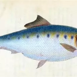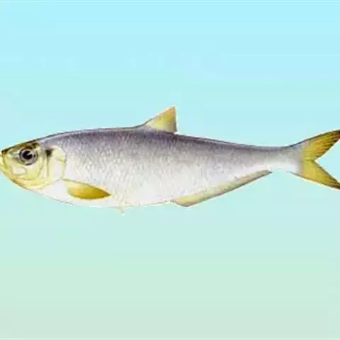 鳓鱼(lè yú),别名:鲙鱼、白鳞鱼、克鳓鱼、火鳞鱼、曹白鱼。暖水近海中鱼类。味鲜肉细,营养价值极高,其含蛋白质、脂肪、钙、钾、硒均十分丰富;鳓鱼富含不饱和脂肪酸,具有降低胆固醇的作用,对防止血管硬化、高血压和冠心病等有益处。鳓鱼在中国渔业史上是最早的捕捞对象之一,已有5000多年的历史。据山东省胶县三里河“新石器时代”的遗址中,多次在墓葬中发现鳓鱼骨头,在废坑中还有成堆的鳓鱼鳞。