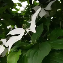日本四照花,是四照花属落叶灌木至小乔木,高可达9m。小枝细,绿色,后变褐色,光滑。单叶对生,卵状椭圆形或卵形,长6~1 2cm,叶端渐尖,叶基圆形或广楔形,弧形侧脉4~5对,脉腋有黄或淡褐色毛,有4枚白色花瓣状总苞片,椭圆状卵形,长5~6cm