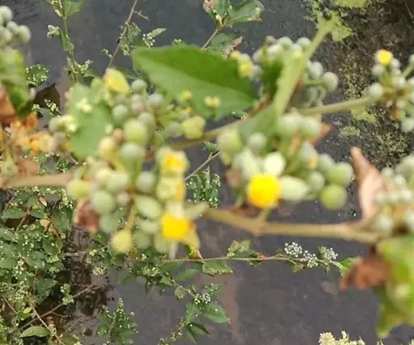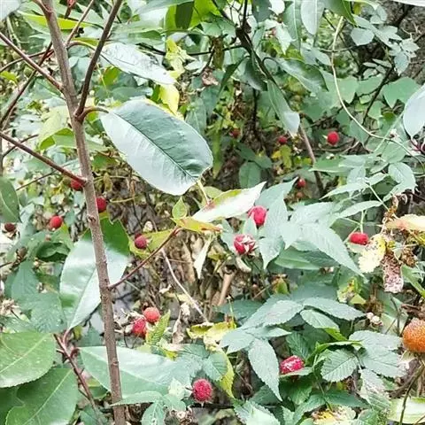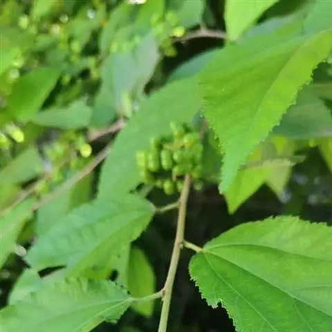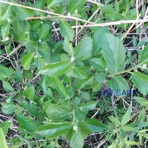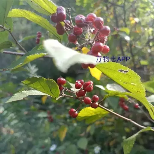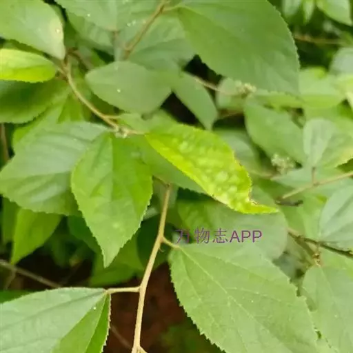 扁担杆 灌木或小乔木,高1-4米,多分枝;嫩枝被粗毛。叶薄革质,椭圆形或倒卵状椭圆形,长4-9厘米,宽2.5-4厘米,先端锐尖,基部楔形或钝,两面有稀疏星状粗毛,基出脉3条,两侧脉上行过半,中脉有侧脉3-5对,边缘有细锯齿;叶柄长4-8毫米,被粗毛;托叶钻形,长3-4毫米。聚伞花序腋生,多花,花序柄长不到1厘米;花柄长3-6毫米;苞片钻形,长3-5毫米;颧片狭长圆形,长4-7毫米,外面被毛,内面无毛;花瓣长1-1.5毫米;雌雄蕊柄长0.5毫米,有毛;雄蕊长2毫米;子房有毛,花柱与萼片平齐,柱头扩大,盘状,有浅裂。核果红色,有2-4颗分核。花期5-7月。