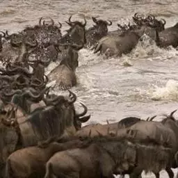 非洲野水牛:共有5个亚种。头体长2.1-3.4米,身高1-1.7米,体重300-900千克。胸膛宽…