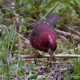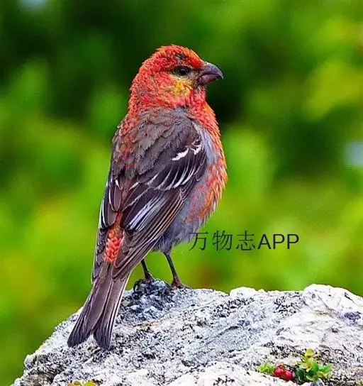 藏朱雀:全长约17-18厘米。雄鸟头部深红色具光辉,喉部暗红色具白色点斑;背部灰白色,各羽具玫瑰红…