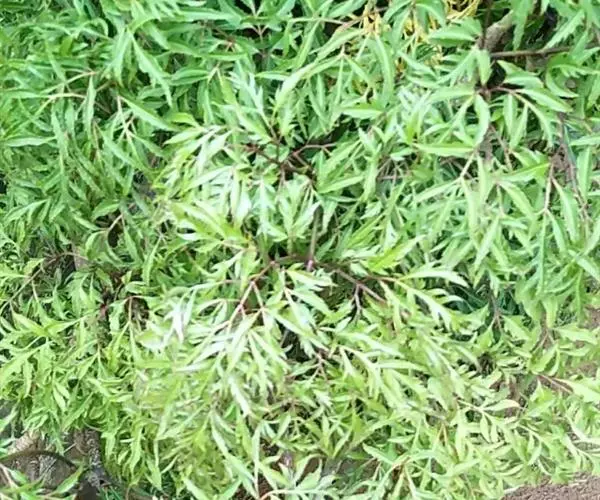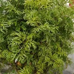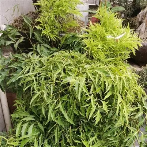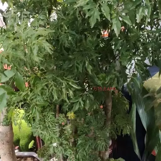 常绿性灌木。株高1-3米,侧枝细长,分枝皮孔显著。叶为不整齐的2-3回羽状复叶,中脉明显,小叶狭长披针形,羽状深裂形,叶缘呈不规则锯齿状,叶面平滑,羽状侧脉,纸质,有叶鞘,侧枝多下垂,树冠呈伞状。