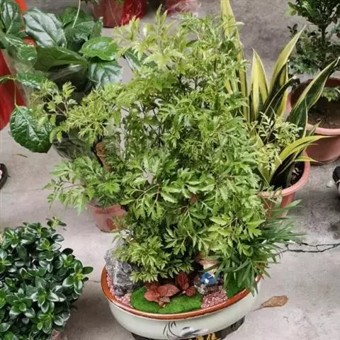 小型盆栽常用4号花盆,根据植株大小选用不同口径的花盆。大型树桩一般用大的瓷瓦盆或木盆。盆栽羽叶南洋参应选用疏松肥沃、排水透气良好、富含有机质的培养土。通常用园土5份、腐叶土3份、腐熟有机肥1份、河沙1份混合配置,也可以用进口基质或者中国产草炭土加珍珠岩和蛭石进行基质栽培。生长季节每月进行一次松土,确保其根部始终处于通透良好的状态。