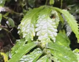 叶无柄或近无柄;叶片草质,斜倒披针状长圆形或斜长圆形,有时稍镰状弯曲,长4.5-16(-19)厘米,宽2.2-4.5(-6)厘米,顶端骤尖(骤尖部分全缘),基部在狭侧楔形,在宽侧圆形或浅心形,边缘在基部之上有较多牙齿,上面有少数短糙伏毛,下面无毛或沿脉有短毛,钟乳体明显,密,长0.3-0.4毫米,叶脉羽状,侧脉每侧5-8条;托叶狭条形或狭三角形,长3-5毫米,无毛。