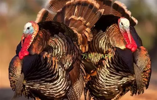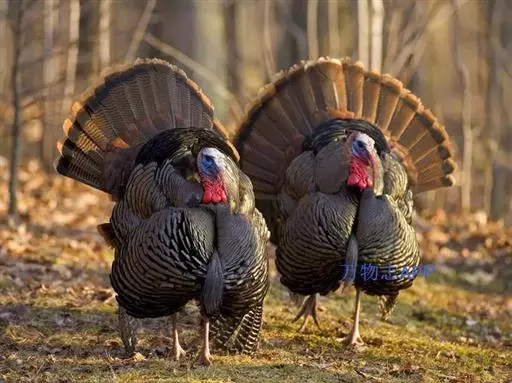 火鸡(学名:Meleagris gallopavo):也叫吐绶鸡。体长110-115厘米。翼展125-144厘米,体重2.5-10.8千克。嘴强大稍曲。头颈几乎裸出,只有稀疏羽毛,并着生红色肉瘤,喉下垂有红色肉瓣。背稍隆起。体羽呈金属褐色或绿色,散布黑色横斑;两翅有白斑;尾羽褐或灰,具斑驳,末端稍圆。脚和趾强大。体羽从乳白色至棕灰色至黑色褐黑色,闪耀多种颜色的金属光泽。头、颈上部裸露,有红珊瑚状皮瘤,喉下有肉垂,颜色由红到紫,可以变化。雄火鸡尾羽可展开呈扇形,胸前一束毛球。