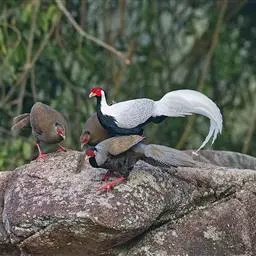 白鹇,是鸡形目雉科鹇属的一种留鸟。雄鸟上体白色并具黑色纹,下体黑色,头顶具黑色长羽冠,…