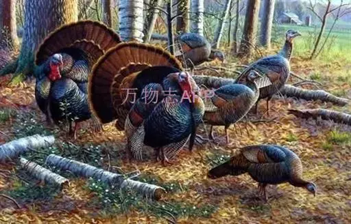 火鸡原产在美国和墨西哥。栖息在温带和亚热带森林中。野生火鸡喜栖息在水边林地。