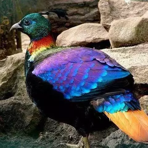 黑长尾雉大型鸡类,体长53~88厘米。雄较雌大。雄鸟通体紫蓝色,脸鲜红色,翅上有一条显著的白色翅斑…
