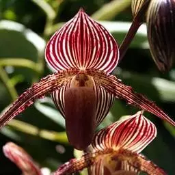 紫纹兜兰 Stein)是兰科兜兰属的地生或半附生植物。叶基生,叶片狭椭圆形或长圆状椭圆形,…