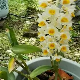 球花石斛,是兰科石斛属的多年生附生草本。茎直立或斜立,圆柱形,粗壮,基部收狭为细圆柱形,不分枝,…