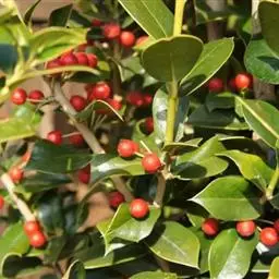 枸骨又名猫儿刺、老虎刺等,为常绿灌木或小乔木,叶形奇特,碧绿光亮,四季常青,入秋后红果满枝,经冬不…