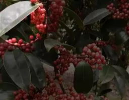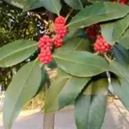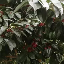 铁冬青 铁冬青为常绿灌木或乔木,枝繁叶茂,四季常青,果熟时红若丹珠,赏心悦目。铁冬青树叶厚而密,湖边或开阔地种植此树,能形成阴蔽的环境,又能产生多层次丰富景色的效果,是理想的园林观赏树种。 有火烧叶子,不燃烧会形成黑色圆圈,故可做防火树种。
