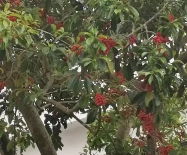 园林应用习惯称为万子千红树(意即多子多孙,兴旺发达之意,是旺家旺业的好意头树木品种),花黄白色,芳香。浆果状核果椭圆形,有光亮,深红色。花期3~4月,果成熟期11月。花后果由黄转红,秋后红果累累,十分可爱。铁冬青树叶厚而密,树木粗壮健康,树形古朴美观,是理想的园林观赏树种。