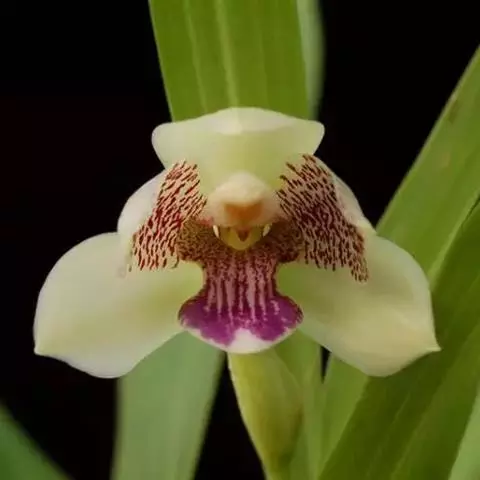 苞舌兰:假鳞茎扁球形,通常粗1-2.5厘米,被革质鳞片状鞘,顶生1-3枚叶。叶带状或狭披针形,…