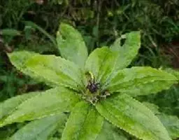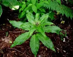 2.《本草衍义》:蚤休,无旁枝,止一茎挺生,高尺余。颠有四、五叶,叶有歧,似虎杖。中心又起茎,亦如是生叶。惟根入药用。