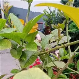 香橼为小乔木或灌木状;株高达5米;幼枝、芽及花蕾均暗紫红色;茎枝多刺,长达4厘米;单叶,…
