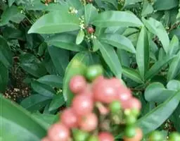 常绿灌木或小乔木。叶椭圆形,两端尖。果扁圆形,朱红色;味甜,可食。产自中国东南部,广东地区大量盆栽。