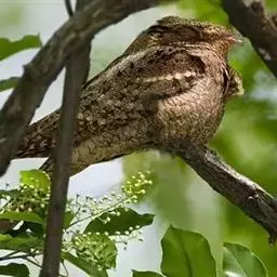 夜鹰别名蚊母鸟,它白天常常蹲伏在树木众多的山坡地或树枝上,当在树上停栖时,身体贴伏在枝上,有如枯树节,所以俗称贴树皮。科学家将这种与环境色彩相似的体色称为“保护色”,它有利于动物隐藏自己,更有效地躲避敌人和捕捉食物。