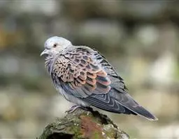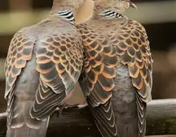 欧斑鸠体长27厘米,是一种体型略小的粉褐色斑鸠。颈侧具多黑白色细纹的斑块,翼覆羽深褐,…