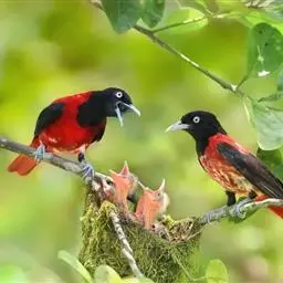 金黄鹂(学名:Oriolus oriolus)是中型鸣禽。体长24厘米。头全黄色。体羽鲜丽,主要由为黄和黑的颜色组合,雌鸟与幼鸟多具条纹。雄性成鸟眼先、翼及尾基部黑色,其余为鲜亮黄色。雌鸟较暗淡而多绿色。幼鸟偏绿色,下体具细密纵纹。虹膜红色;嘴红色;脚灰色。喙长而粗壮,约等于头长,先端稍下曲,上喙端有缺刻;鼻孔裸露,盖以薄膜;翅尖长;尾短圆,跗跖短而弱。