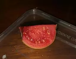 2、香圆:本品呈类球形,半球形或圆片,直径4~7cm。表面黑绿色或黄棕色,密被凹陷的小油点及网状隆起的粗皱纹,顶端有花柱残痕及隆起的环圈,基部有果梗残基。质坚硬。剖面或横切薄片,边缘油点明显;中果皮厚约0.5cm;瓤囊9~11室,棕色或淡红棕色,间或有黄白色种子。气香,味酸而苦。