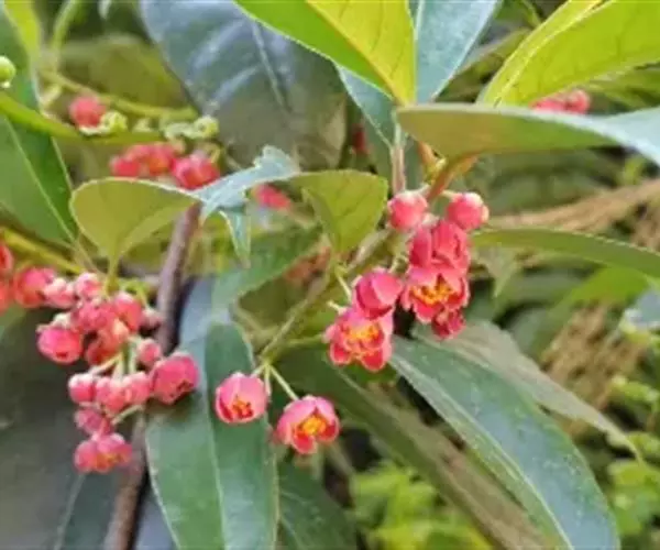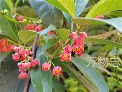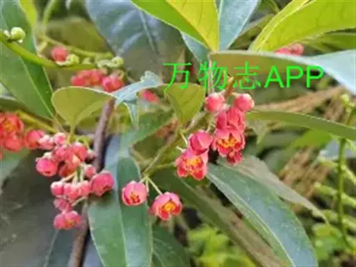 叶厚革质,长圆形至卵状长圆形,椭圆状长圆形,长4-13厘米,宽2-4厘米,先端急尖至渐尖,基部楔形至宽楔形,下部全缘,中部以上具疏红色腺细锯齿,两面无毛,主脉上面具槽,背面隆起,侧脉每边6-7,细,网结,细脉不明显。