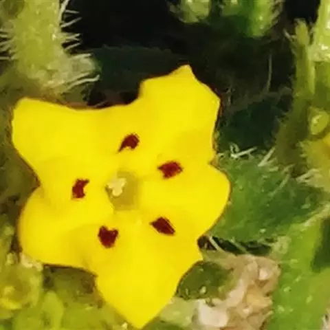 全草长8-25cm,密被粗硬毛和短柔毛。根细圆柱形,长短不一,直径0.5-2mm,表面紫黑色或黑棕色,断面皮部黑紫色,木部淡黄白色。茎细圆柱形,直径0.5-2.5mm,表面灰绿色或暗褐色,断面类白色,中空。叶互生,多破碎卷曲,草质,灰绿色,完整者展平后呈倒披针状条形或披针状条形。花棕黄色。小坚果三角状卵形,常4个着生在一起。气微,味微苦。