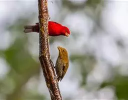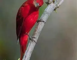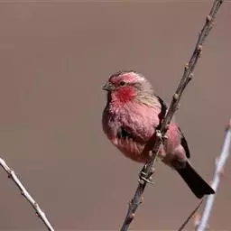 酒红朱雀小型鸟类,体长13~15厘米。雄鸟通体深红色,头部深朱红或棕红色,下背和腰玫瑰红色,…