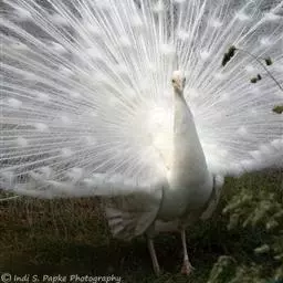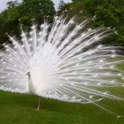白孔雀,脊椎动物,鸟纲,雉科。其全身洁白无瑕,羽毛无杂色,…