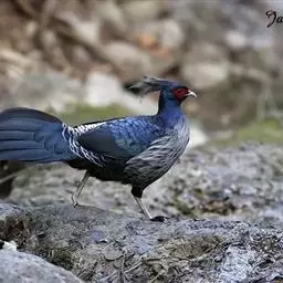 黑长尾雉大型鸡类,体长53~88厘米。雄较雌大。雄鸟通体紫蓝色,脸鲜红色,翅上有一条显著的白色翅斑…