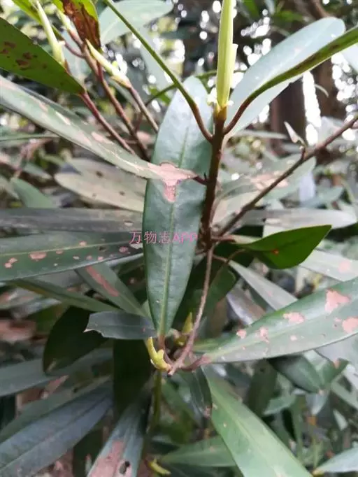 大灌木,高2-7m。叶互生;叶柄长约1cm;叶片革质,长圆状倒披针形至倒披针形,长7-17cm,宽1.3-6cm,先端急尖或钝,稀突然渐尖,基部楔形,多少下延,全缘,背面中脉隆起,侧脉不明显。伞形花序或花簇生,着生于具覆瓦状排列的苞片的小短枝上,小短枝腋生或生于无叶老枝叶痕上,有花3-10朵,苞片广卵形,具疏缘毛;花梗长2-3mm;花长(2)3-4mm;萼片卵形,稀圆形,长约1mm,具缘毛,有时具腺点;花瓣白色或淡绿色,有时为紫红色,基部连合达全长的1/4,花时反卷,卵形或椭圆形,具腺点,里面和边缘密被乳头状突起;雄蕊在雌花中退化,在雄花中着生于花冠中部,花丝极短,花药卵形,先端常具乳头状突起;雌蕊与花瓣等长或超过花瓣,花柱极短,柱头伸长,先端扁平。果球形或近卵形,直径4-5mm,灰绿色或紫黑色,有时具纵行腺条纹或纵肋,冠以宿存花柱基部,果梗有时长达7mm。花期4-5月,果期10-12月。