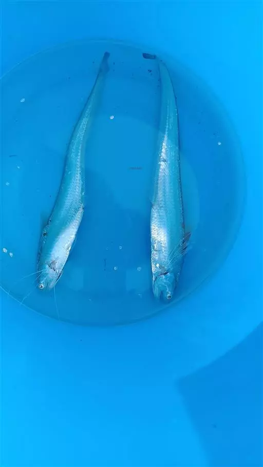 ③饵料鱼规格:为保证投喂的饵料鱼规格适宜,拟选择适口规格的饵料鱼、小虾等。刀鱼鱼种刚下池时,或在1-4月,拟选择鱼虫、小规格饵料鱼。刀鱼规格长至15厘米以上时,一般饵料鱼体长为刀鱼体长的1/10-1/5。同时要经常检查刀鱼的摄食和生长情况,并兼顾刀鱼生长的差异。
