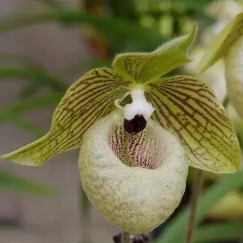 大花杓兰因其形状酷似一个口小肚大的囊袋,又名“大口袋兰”。花体呈紫红色,花朵直径5厘米至6厘米,…