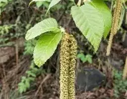 乔木,高6-20米;树皮黑褐色,龟裂;枝条红褐色或暗褐色,光亮,无毛;小枝红褐色, 疏被长柔毛,密生树脂腺体。叶厚纸质,通常为长卵形,间有宽卵形、卵形、菱状卵形或椭 圆形,长4-8厘米,宽3.5-5厘米,顶端锐尖或渐尖,基部近圆形、宽楔形或楔形,边缘具 不规则的锐尖重锯齿,上面无毛,下面密生腺点,沿脉疏被长柔毛,脉腋间具簇生的髯毛, 侧脉6-8对;叶柄长约5-15毫米,疏被长柔毛或近无毛。果序矩圆状圆柱形,单生,直 立或微下垂,长2-2.5厘米,直径约l厘米;序梗长约5-12毫米,疏被长柔毛或几无毛, 有时具树脂腺体;果苞长约5.-T6毫米,背面无毛,边缘具纤毛,基部宽楔形,上部三裂,中裂片矩圆形或披针形,顶端钝,侧裂片卵形或宽卵形,斜展,横展至下弯,比中裂片宽,与之等长或稍短。小坚果宽椭圆形,两面无毛,膜质翅宽约为果的1/2。