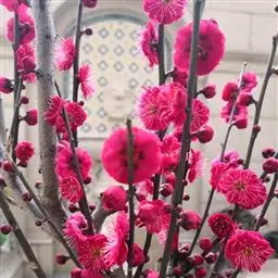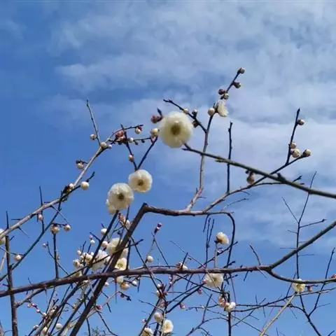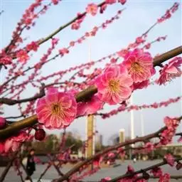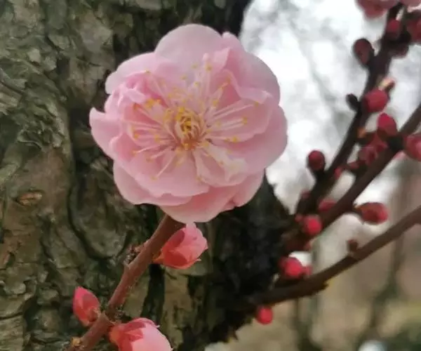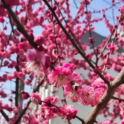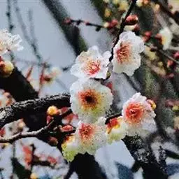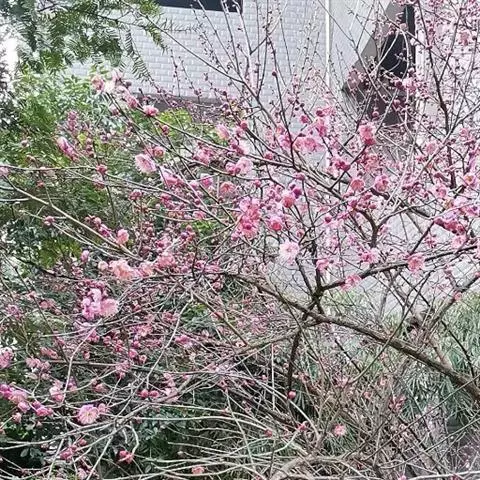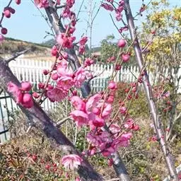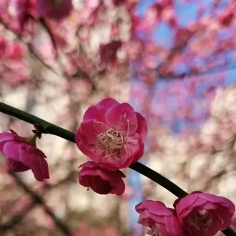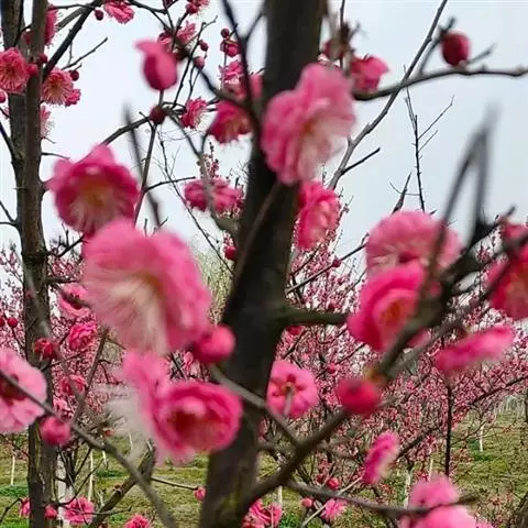 杏梅系的梅花观赏价值高,花径大、花色亮且花期长。