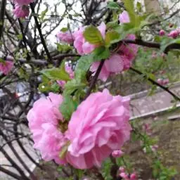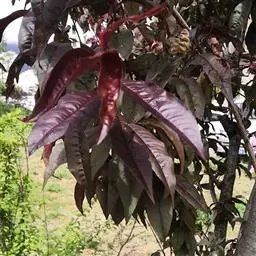杏梅,杏与梅分别为蔷薇科的两个不同树种,枝叶介于梅杏之间,花托肿大、梗短、花不香,似杏,果味酸、果核表面具蜂窝状小凹点,又似梅。