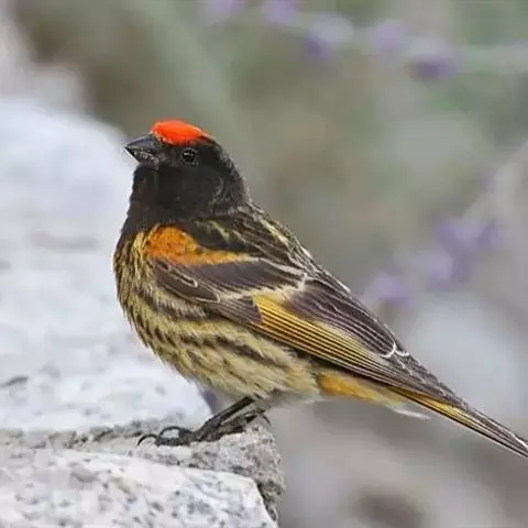 红额金翅雀:共有14个亚种。小型鸟类,体长12-14厘米。额、脸颊和颏朱红色,眼先和眼周黑色,在淡…