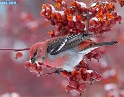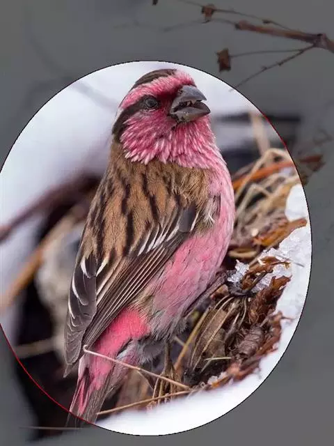 北朱雀,是燕雀科朱雀属鸟类。雄鸟额和头顶前部珠白色具窄的粉红色羽缘,…