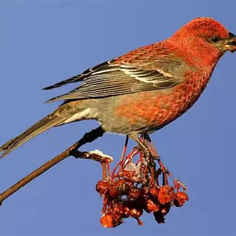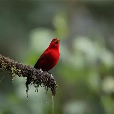 酒红朱雀小型鸟类,体长13~15厘米。雄鸟通体深红色,头部深朱红或棕红色,下背和腰玫瑰红色,…
