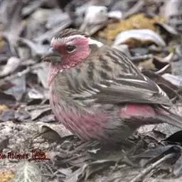 红眉朱雀:体长15厘米,是一种中等体型的朱雀。上体褐色斑驳,眉纹、脸颊、胸及腰淡紫粉,臀近白。…