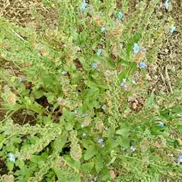 多苞斑种草为一年生或两年生草本。成株 茎直立或上升被开展的糙毛,有分枝。叶卵状披针形或狭椭圆形。镰…
