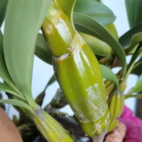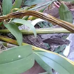 景洪石斛:茎直立,细圆柱形,多少木质化,上部常分枝,基部上方2-3个节间膨大呈纺锤形;膨大部分的茎…