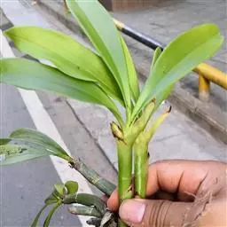 盆裁3年以上的植株或部分秋石斛茎的顶部或基部长有小植株时,可以进行切芽繁殖。选择具有3-4片叶,2-3条根,根长4-5厘米的小植株,从母株上切下,用草木灰或70%的代森锰锌处理伤口,将苗植入盆中即可。汪意要浅植。栽培2年后一般可开花成为商品花。