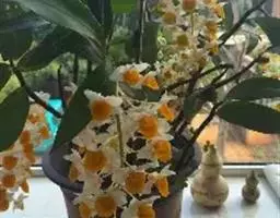 通常选用四壁多孔的塑料或陶瓷花盆,用碳根、泥炭藓、树皮块、木炭块等作盆栽材料。根据兰苗的大小,选择不同规格的花盆,但不宜用大盆栽小苗口上述栽好材料在使用前必需在清水中浸泡1天以上备用。盆底要多垫大瓦片或碎砖块,深度至盆底约1/3处,然后将兰苗放于盆中央,并在一旁插一细竹竿以固定兰苗,再填入其他栽培材料,注意根与根之间用材料隔开。