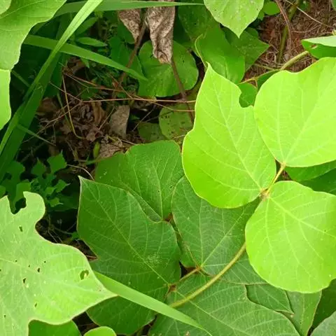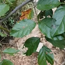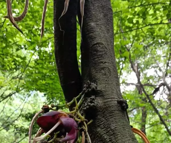 常绿木质藤本,长可达25米。老茎直径超过30厘米,树皮有皱纹,幼茎有纵棱和皮孔。羽状复叶具3小叶,叶长21-39厘米;托叶脱落;叶柄长7-16.5厘米;小叶纸质或革质,顶生小叶椭圆形,长圆形或卵状椭圆形,长8-15厘米,宽3.5-6厘米,先端渐尖头可达15厘米,基部稍楔形,侧生小叶极偏斜,长7-14厘米,无毛;侧脉4-5对,在两面明显,下面凸起;小叶柄长4-8毫米,膨大。